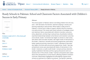 The school system in Pakistan seems to be failing children from the very start – with low levels of enrolment, retention (staying in school), and learning, especially in early primary. What makes a ready school in Pakistan, a school that is ready to support children they first transition into early primary? This study used mixed methods to investigate school and classroom factors associated with children’s transition outcomes: entry, adjustment, and learning in early primary.